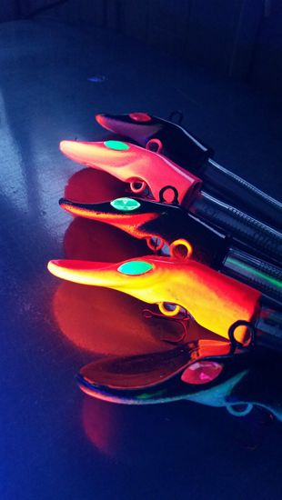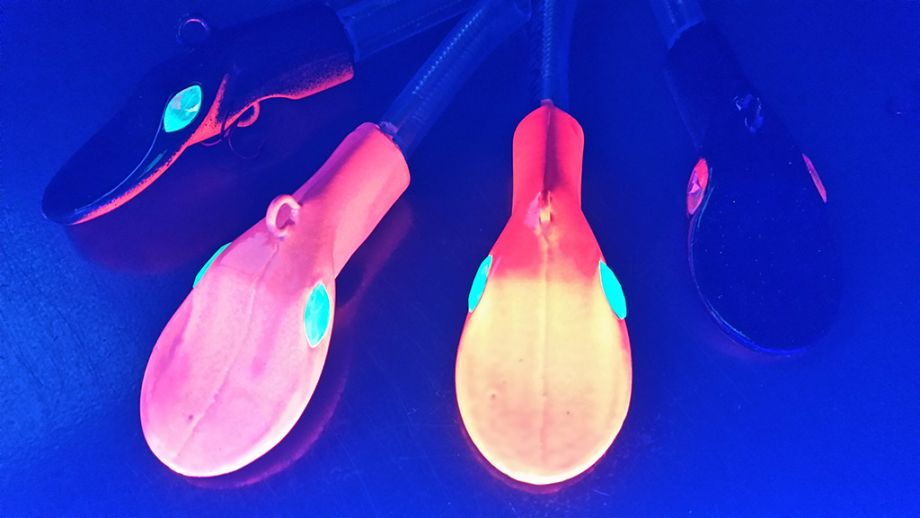 Ein weiteres Geheimnis liegt in den verwendeten Farben. In dem aktuellen Modell kommen insbesondere UV-aktive Farben zum Einsatz. Je nach Modellfarbe sind die UV-aktiven Anteile mehr oder weniger stark ausgeprägt. Es werden bis zu 10 Lackschichten aufgetragen, die den Lack besonders flexibel und widerstandsfähig machen. Mit UV-aktiven Farben und Schmucksteinen als Augen, die auch bei Restlicht verführerisch funkeln und darüber hinaus auch noch UV-Aktiv sind, wirkt er unwiderstehlich auf die großen Räuber der Meere. Heilbutt, Großdorsch und Leng haben Köderfische am goNorge Kveite Killer einfach zum Fressen gern.
