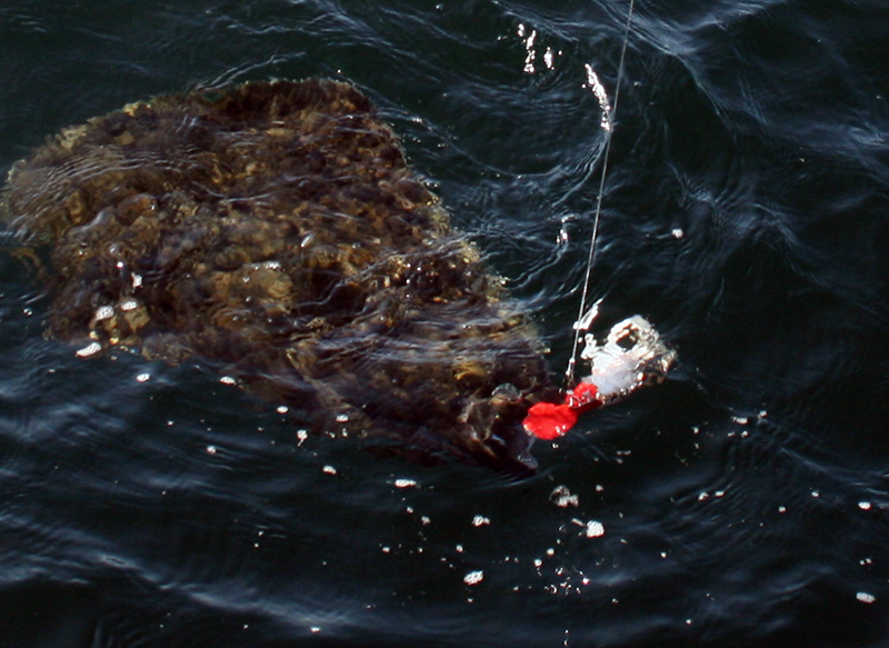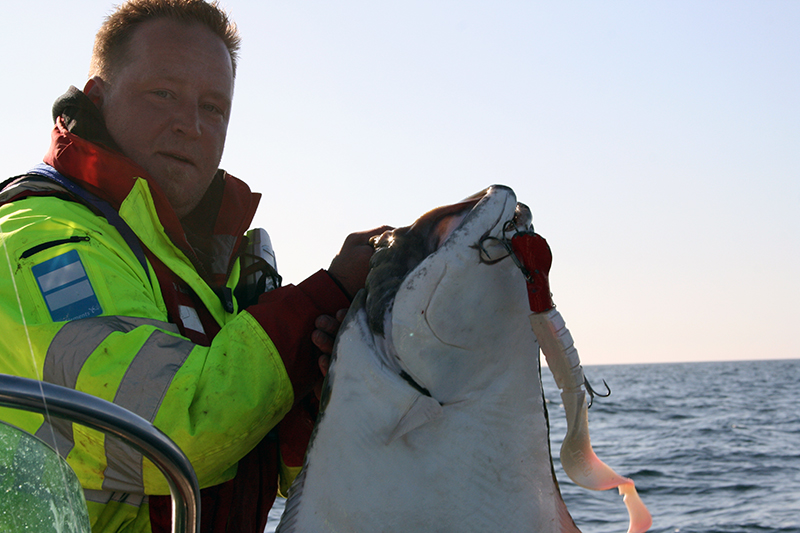 Neben seinen unberechenbaren Laufeigenschaften, die einem verletzten Fisch sehr ähneln, ist er mit frischen ganzen Köderfischen, von ca. 40cm Größe, ein wahrer Großfischmagnet. Unzählige Heilbutte bis über 100kg Dorsche über 28kg, Leng, Lumb und Steinbeißer sind uns bereits gemeldet worden.