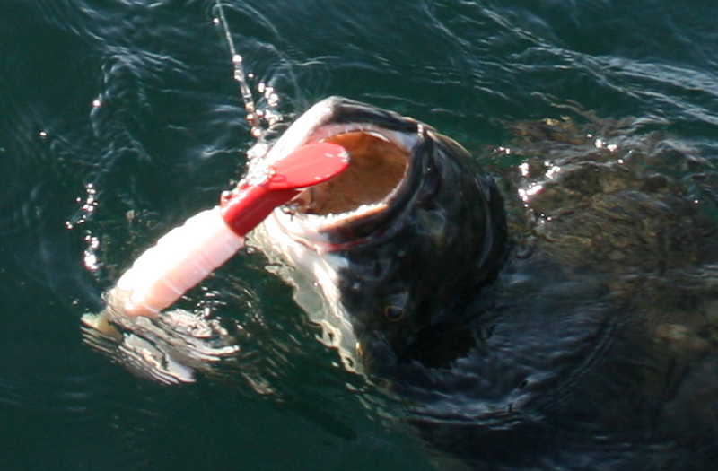 Die beiden Edelstahlschrauben des goNorge Kveite Killers eignen sich auch hervorragend zur Montage eines Gummiköders. Ideal sind Großtwister, die ca. den Durchmesser des goNorge Kveite Killers haben. Im Team wurden besonders erfolgreich der Mann´s Giga bzw. Mega Grub getestet. Ein Gummifisch ist nicht nur eine Alternative, sondern in Kombination von rotem Jigkopf und weißen „Twisterschwanz“ oftmals unschlagbar.