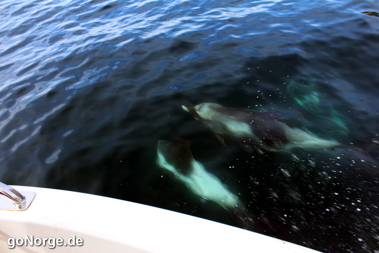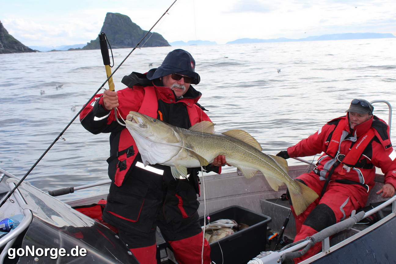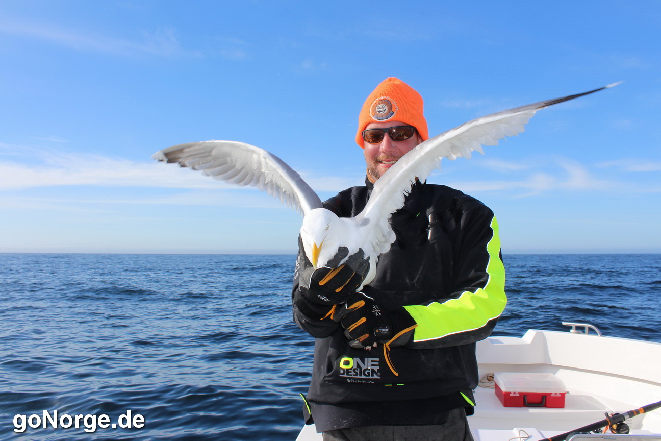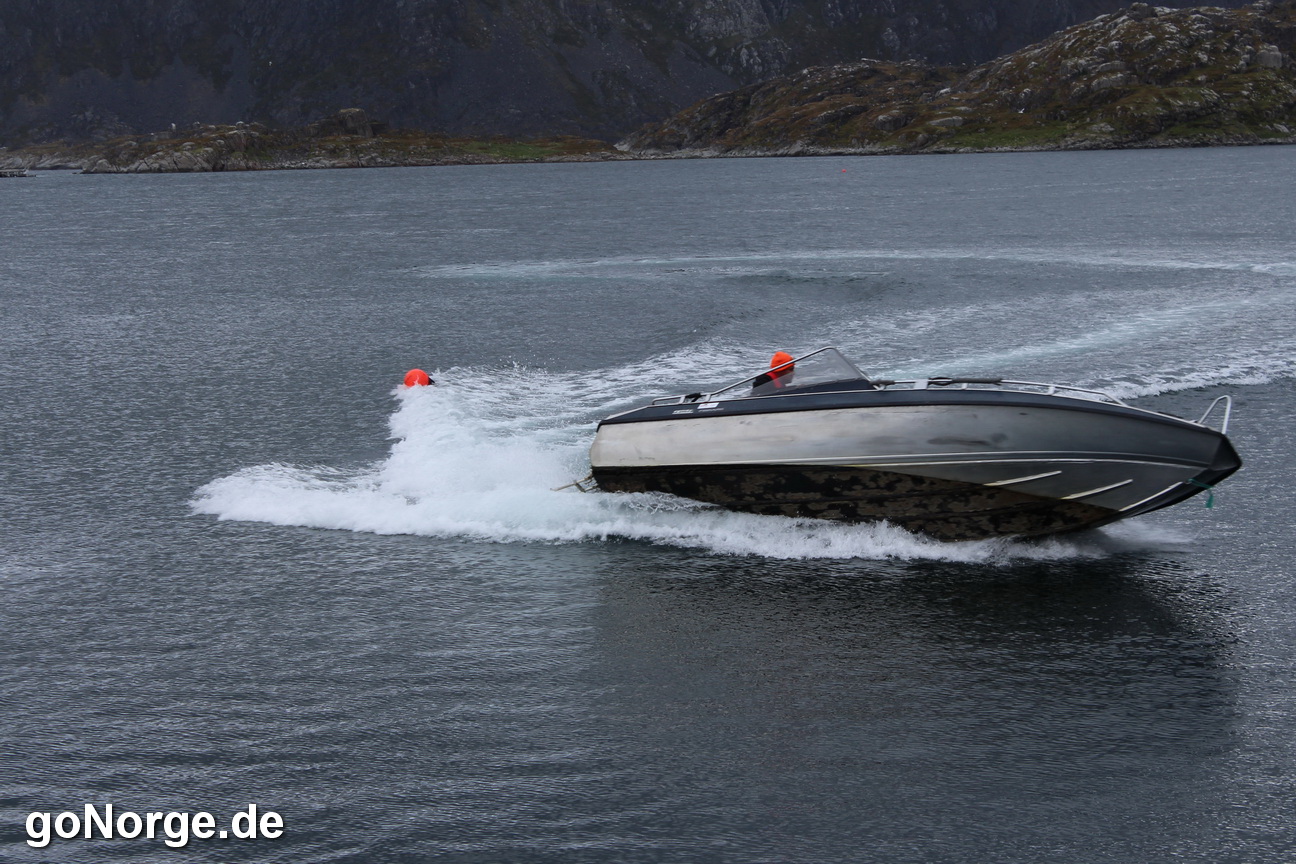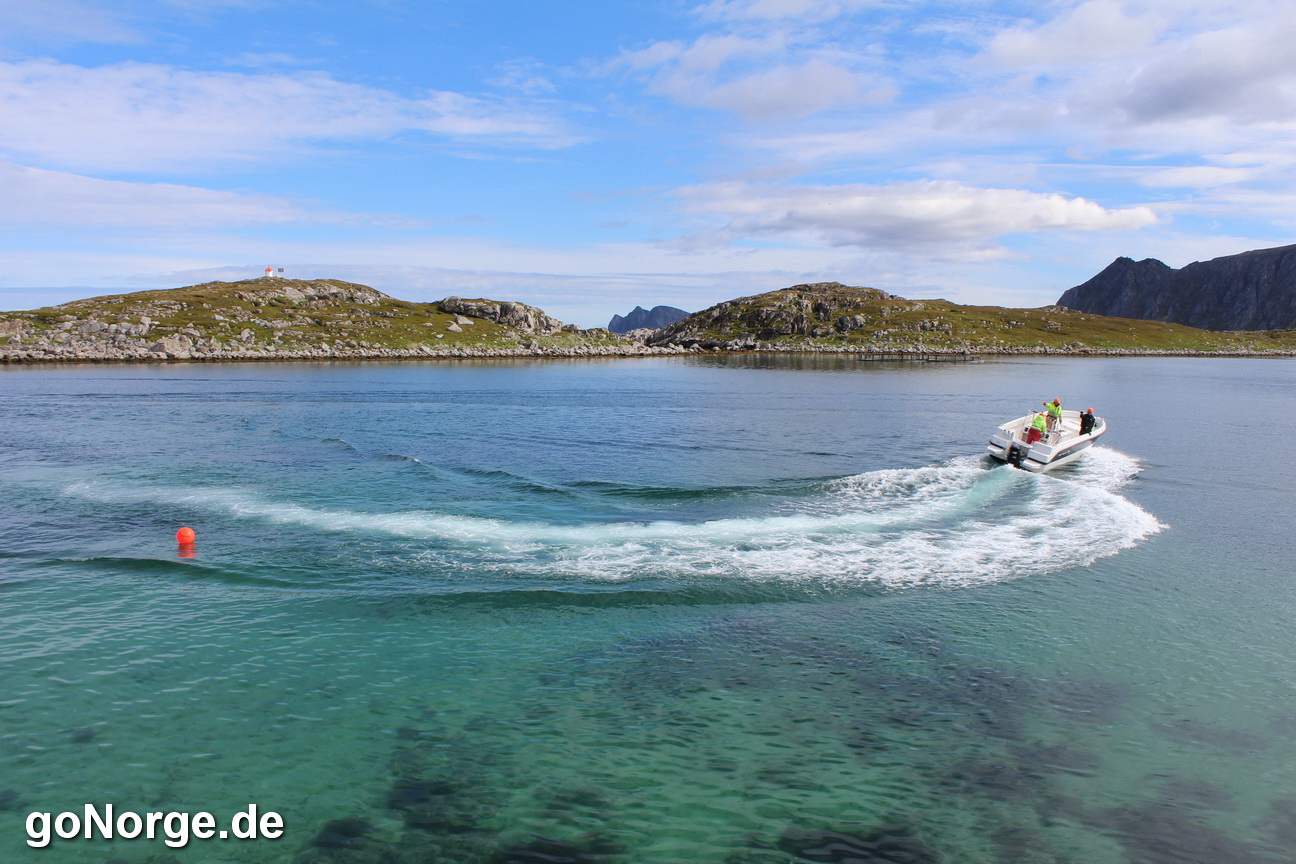 Eines Abends gab es einen Angriff, wie man ihn von Zuhause nicht kennt - dicke Stechmücken schwirrten umher und stürzten sich sofort auf jedes Stück nackte Haut und stachen schmerzvoll zu. Bei Abwehrbewegungen wischte sich ein Gast seine neue 600 Euro Brille vom Kopf. Die schwarze Sehhilfe versank in ca. 6m Wassertiefe und ward nicht mehr gesehen. Das goNorge Team startete eine komplexe Bergungsmission: Ein bunter Pilker wurde am Grund abgelegt. Dann kam die Go Pro Unterwasserkamera zum Einsatz. Nach Auswertung des Videos war die Brille lokalisiert,- sie lag neben einem dicken Felsen in einer Vertiefung unweit des Pilkers. Mit einer beschwerten Leine stellte Robert eine Verbindung vom Schwimmsteg zum Grund her. An diesem Seil tauchte Bastin dann mit unserem neuen Trockenanzug von der Firma „One Design“ im 6 Grad kalten Wasser hinab und brachte die Sehhilfe unversehrt an die Oberfläche. Der Gemütszustand des Besitzers hellte sich umgehend auf. Spaß hatten Alle bei der Aktion!
