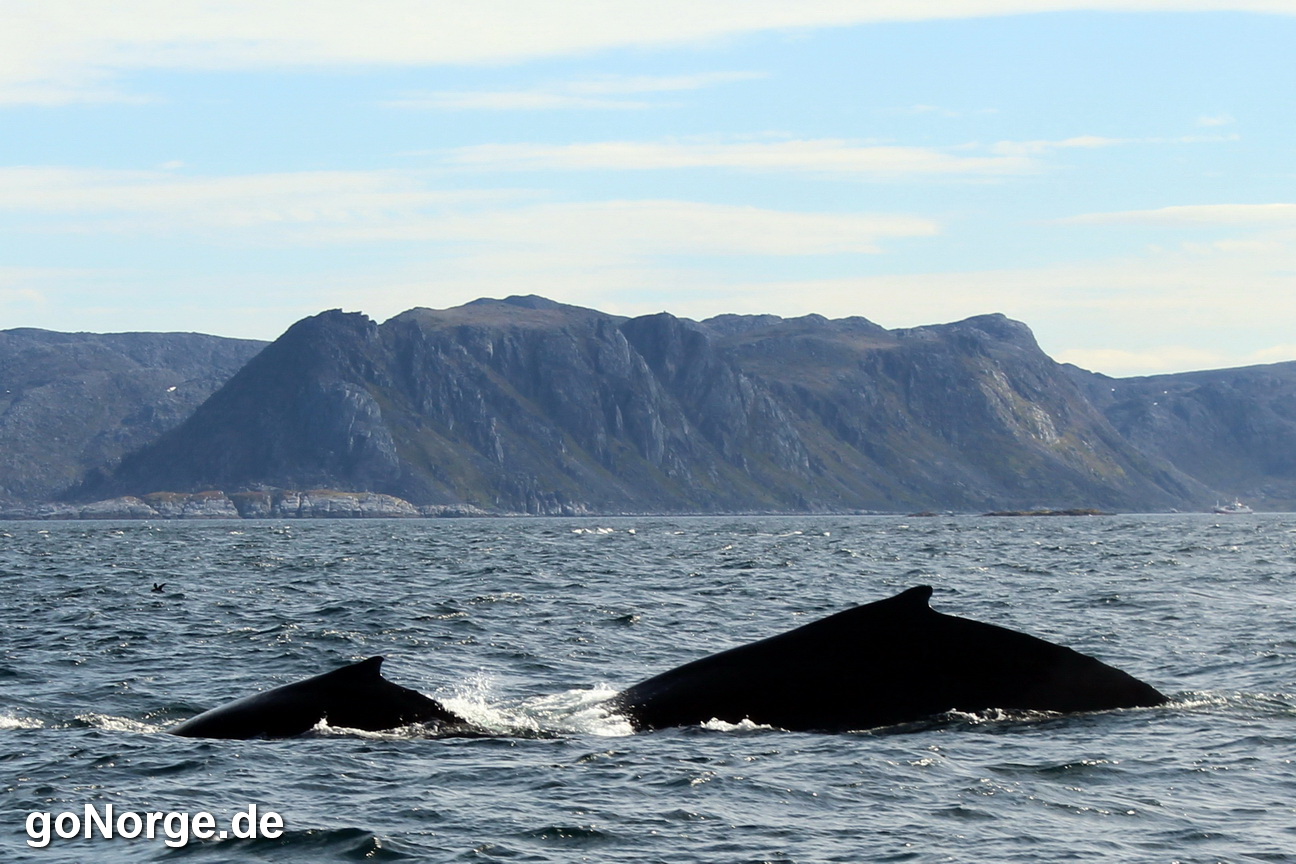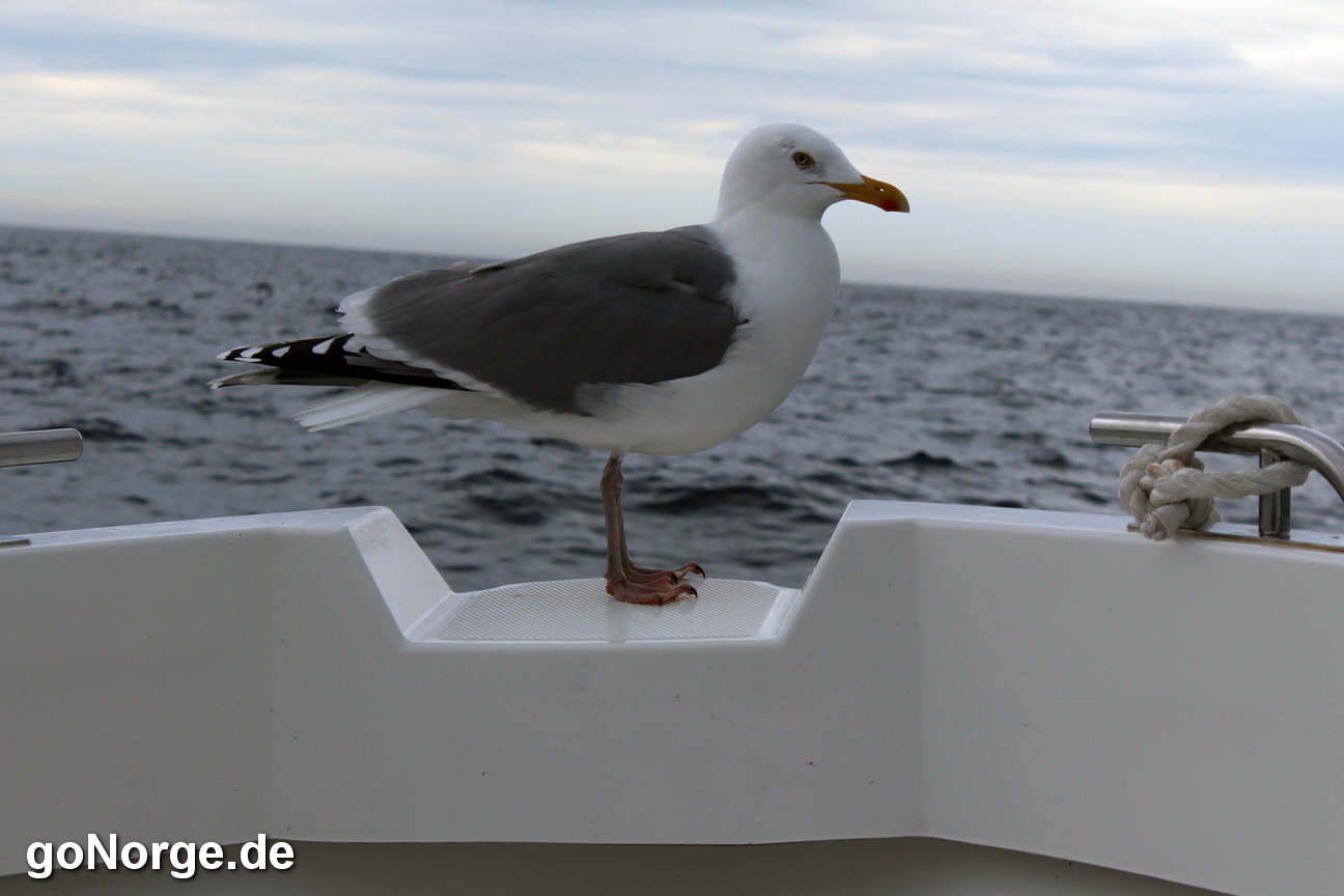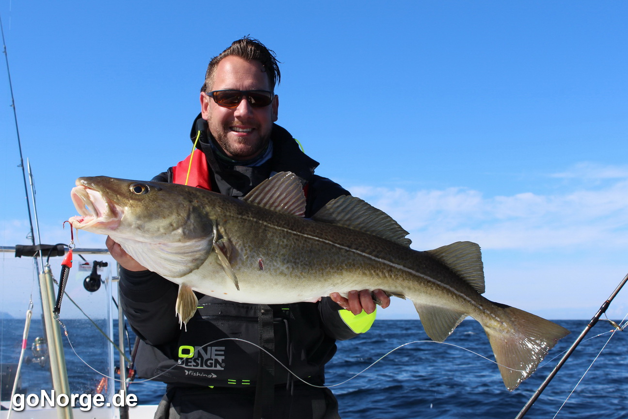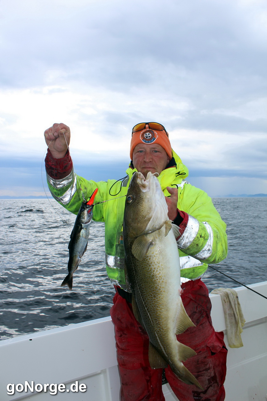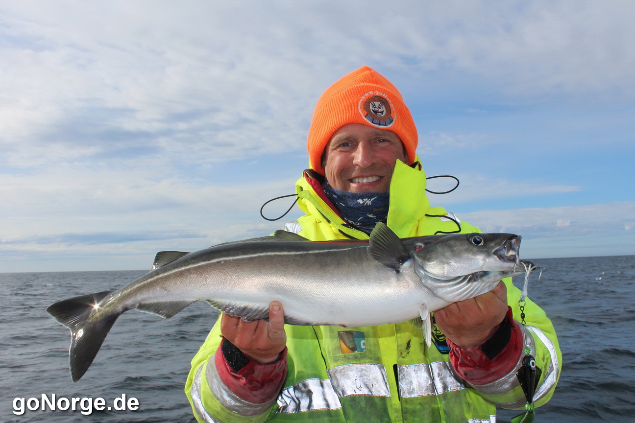 Der Samstag empfing uns mit ungemütlichem Regenwetter, keiner hatte es eilig aufs Wasser zu kommen. Ab 11 Uhr zappelten die ersten guten Dorsche, Schellfische und Steinbeisser an den Ruten. Aber an diesem Tag fing es an - Fluch aber auch Segen... Wale! Schweinswale, Tümmler, Delfine, Zwergwale und mächtige Buckelwale räuberten in unserem Angelrevier. Wenn diese faszinierenden Säugetiere auftauchen gibt es Erinnerungen fürs Leben, aber die Fischwelt wird böse aufgescheucht und vergrämt. Besonders die Heilbutte waren bei Anwesenheit von Walen im Revier nicht zu fangen. In Folge machten eine mittelmäßige Angelei und aufkommender Wind die Entscheidung leicht. Und bei Außentemperaturen im einstelligen Bereich, wie an den meisten Tagen, ab in die warme Bude!