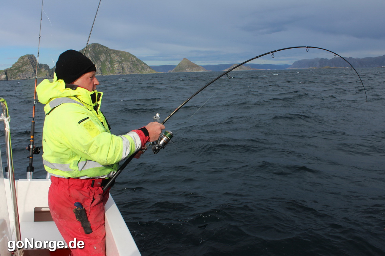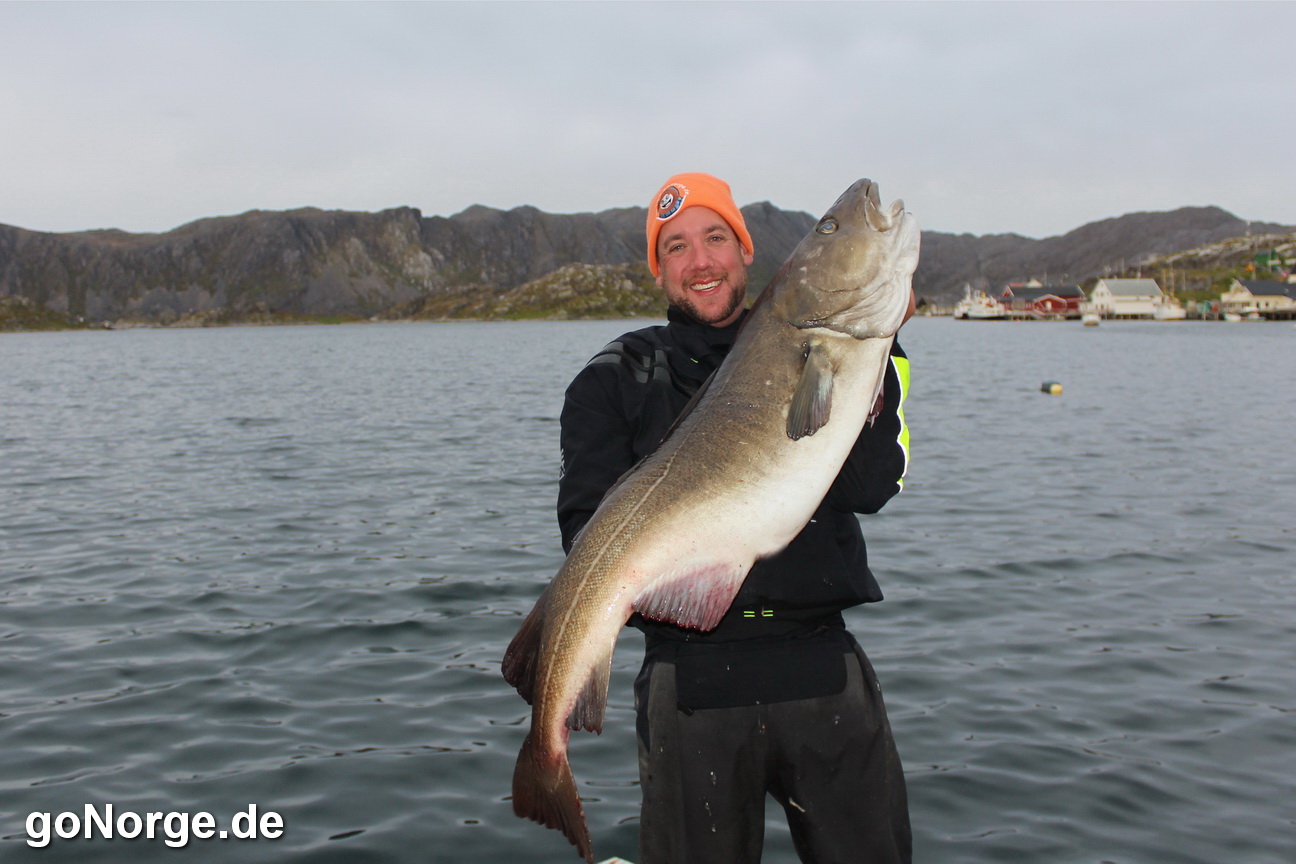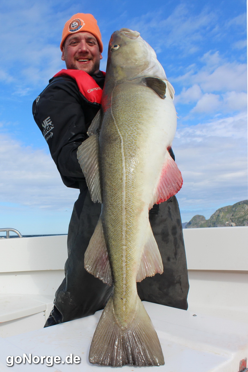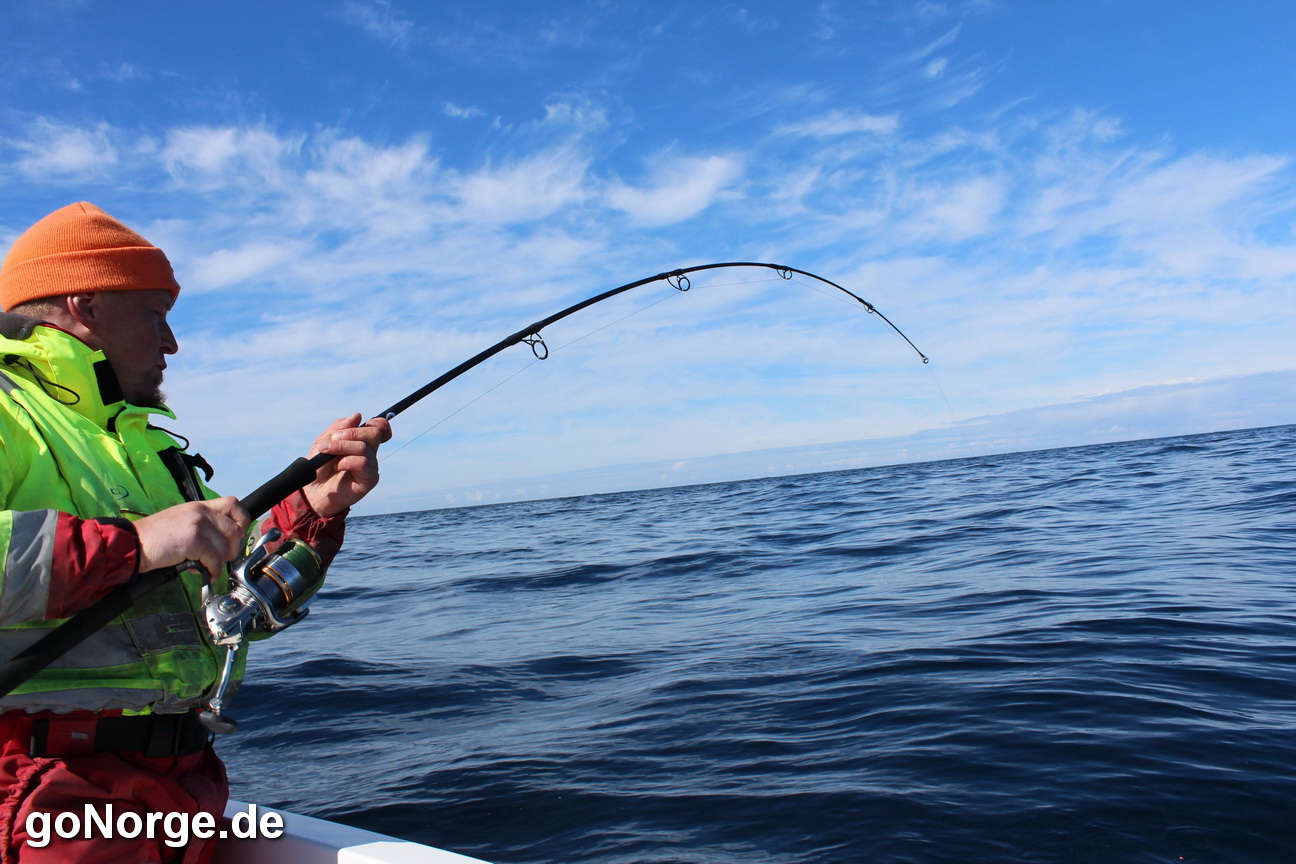 Das Wetter hat sich beruhigt, aber an diesem Morgen war es noch so kabbelig, dass so mancher Teilnehmer etwas Magengrummeln (dezent ausgedrückt) auf dem Boot hatte und nicht alle Besatzungen den Tag durchfischten... Wir fuhren gegen 08.00 Uhr mit 5 Booten und 15 Mann auf die Barentsee hinaus. 4 kleine Heilbutte wurden gefangen und zurückgesetzt, wir hatten einen ca. 30kg Butt, der neugierig an die Oberfläche kam um einen gehakten Dorsch zu begutachten.Weitere 2 Butts gingen bei den Gästen während der Landung verloren. Ausbaufähig! Unser neuer Köder "Seelachskiller" hat bei einem kurzen Test erstmal „nur“ Dorsch gefangen,- das Revier ist nicht so sehr für dicke Köhler bekannt... Aber er funktioniert! Etliche Dorsche bis 15kg, gute Schellfische, Steinbeisser und der übliche Beifang sorgten für einen kurzweiligen Angeltag auf allen Booten. Nach stundenlangem Schaukeln in einer unangenhmen Kreuzsee fanden alle Teilnehmer zeitnah den Weg ins Bett. Erholung tat Not, um am nächsten Tag mit neuer Kraft angreifen zu können!