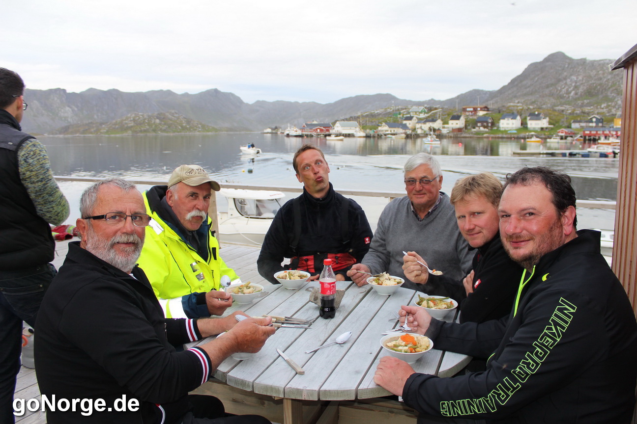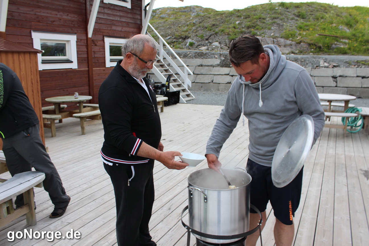 Abends kochte Bastian dann für die ganze Gruppe einen großen Topf Fischsuppe mit reichlich Einlage. Heilbutt, Steinbeißer und Dorschfilet mit ein wenig Schärfe ließen alle Bäuche warm werden.