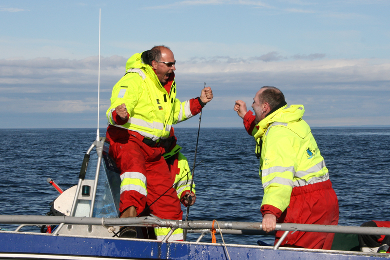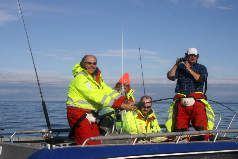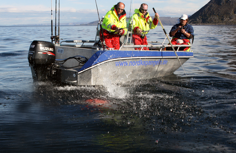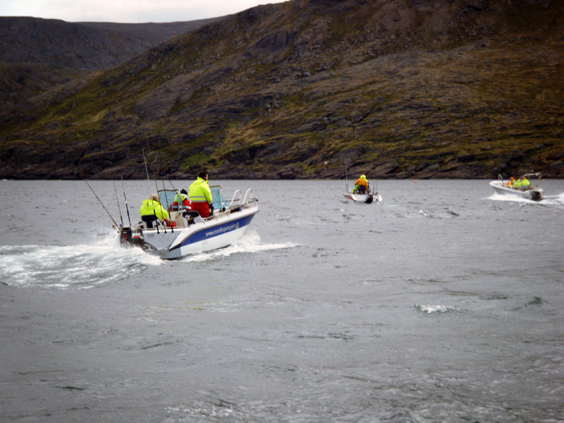 Nachdem am nächsten Morgen das Tackle aufgerüstet und die 4 Boote mit 40 – 90 PS übernommen waren, ging es dann bei hoher Altdünung raus zur ersten Drift des Urlaubes. Wir konnten unter widrigen Bedingungen genug Fisch für das Abendessen fangen und brachen die Tour rechtzeitig ab, um später die restlichen goNorge Gäste mit einer Fischmahlzeit inclusive selbstgemachtem Kartoffelsalat in Empfang zu nehmen.