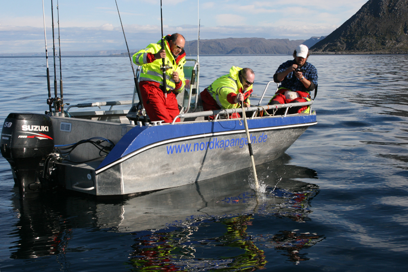 Nach dem sehr positiven Testfischen 2011 in Skarsvag/ Nordkap fanden wir uns nun auch 2012 zur 10tägigen goNorge Tour mit 9 Gästen im nördlichsten Fischerdorf der Welt ein. Die Vorhut bildeten Thomas, Robert und Jens vom goNorge Team, sowie unsere Gäste Holger, Frank und Heinz aus Cuxhaven. Abflug war in Hamburg. In Alta angekommen, nahm uns Peter von Zylle Fishingtours in Empfang und wir fuhren die restlichen 220km im Mercedes Sprinter.