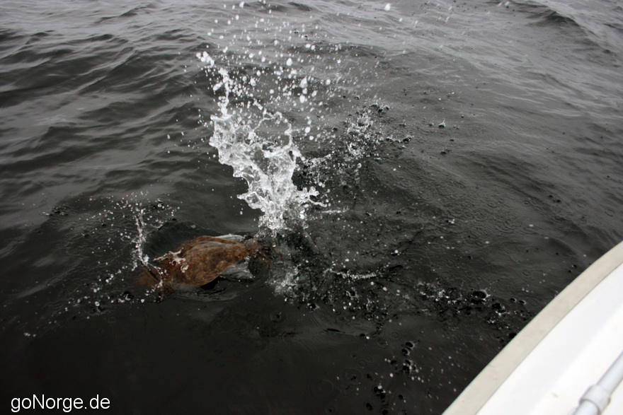 Die platten Könige unter den Fischen in Norge waren in Beißlaune, die Wettervorhersage für die nächsten Tage ideal und der heutige Angeltag noch nicht zuende,- und wir mussten zurückfahren um die Rückreise nach Deutschland vorzubereiten. Grausam!