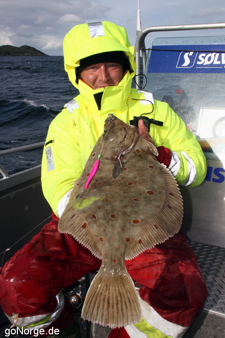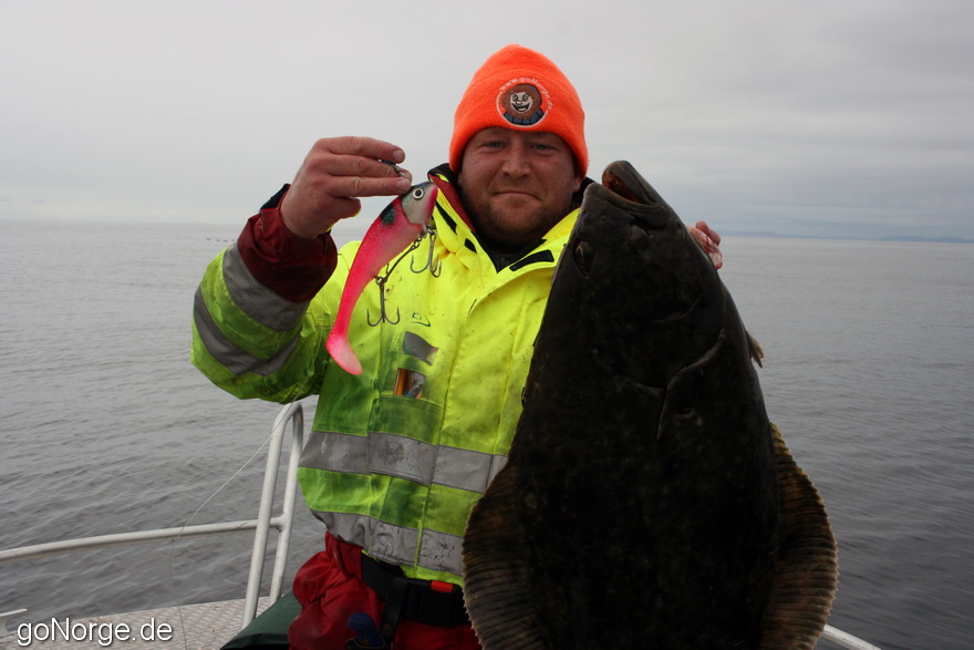 Ein Versuch über tieferem Wasser brachte später einen Köhler von 7,5 kg. Hier war die Abdrift aber so stark, dass ein kontrolliertes Angeln mit Gummiködern nicht möglich war. Ein 80 cm Heilbutt markierte den Abschluss dieses ersten Angeltages.