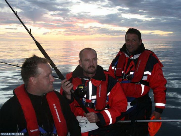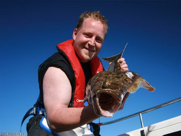Früh los war das Motto am nächsten Tag. Schon sehr zeitig machten wir uns auf den Weg hinaus auf See und konnten gleich gute Dorsche, Köhler, Steinbeißer und Rotbarsche überlisten. Am leichten Gerät machten die ü - 10 Kilo Dorsche mächtig Spaß und verkürzten die Zeit bis zum nächsten Gezeitenwechsel. Als das Wasser ablief waren wir wieder am Heilbutt- Hotspot. Leider konnten wir heute nur einen kleinen Heilbutt landen, den wir wieder in die Freiheit entließen.