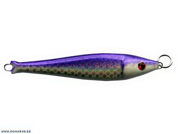 Der „Kiel“ hat ein verdicktes Kopfende und die Kiemendeckel sind herausgearbeitet/ hervorgehoben. Auch wurde der Pilker etwas gedreht. Das heißt Kopf und Schwanz sind nicht in einer Linie und nur mit einer Welle versehen. Leicht taumelnd sinkt er in wellenförmigen Bewegungen zügig abwärts und provoziert schon hier oftmals den Biss.