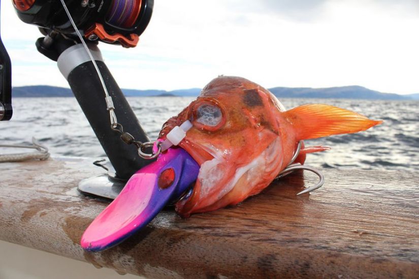 Neben seinen unberechenbaren Laufeigenschaften, die einem verletzten Fisch sehr ähneln, ist er mit frischen ganzen Köderfischen, von ca. 40cm Größe, ein wahrer Großfischmagnet. Unzählige Heilbutte bis über 100kg Dorsche über 28kg, Leng, Lumb und Steinbeißer sind uns bereits gemeldet worden.