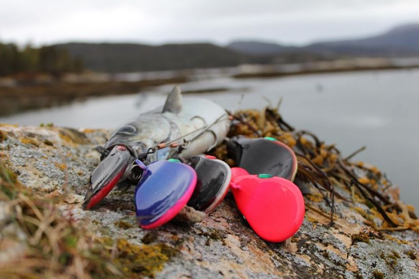 Im Team haben sich frische Köderfische, insbesondere Seelachse von ca. 30 – 50 cm Länge, als am Effektivsten erwiesen. Diese werden von hinten auf den goNorge Kveite Killer aufgesteckt. Das Maul des Köderfisches liegt an der oberen Öse an. Nun führt man einen (idealerweise wiederverwendbaren) Kabelbinder durch die Augenhöhlen und die obere Öse und zieht diesen so fest, dass der Köderfisch hinter der Öse fixiert ist. Mit dieser Technik haben wir einen Abriss des Köderfisches noch nicht erlebt.