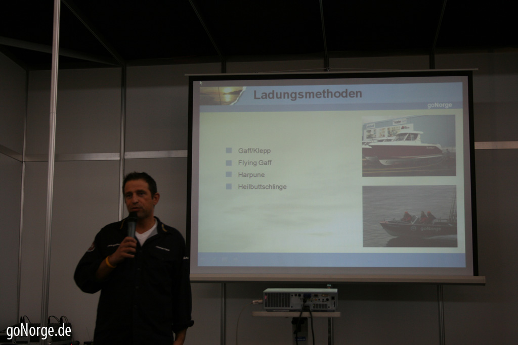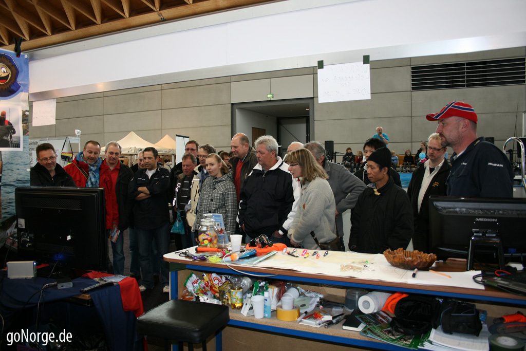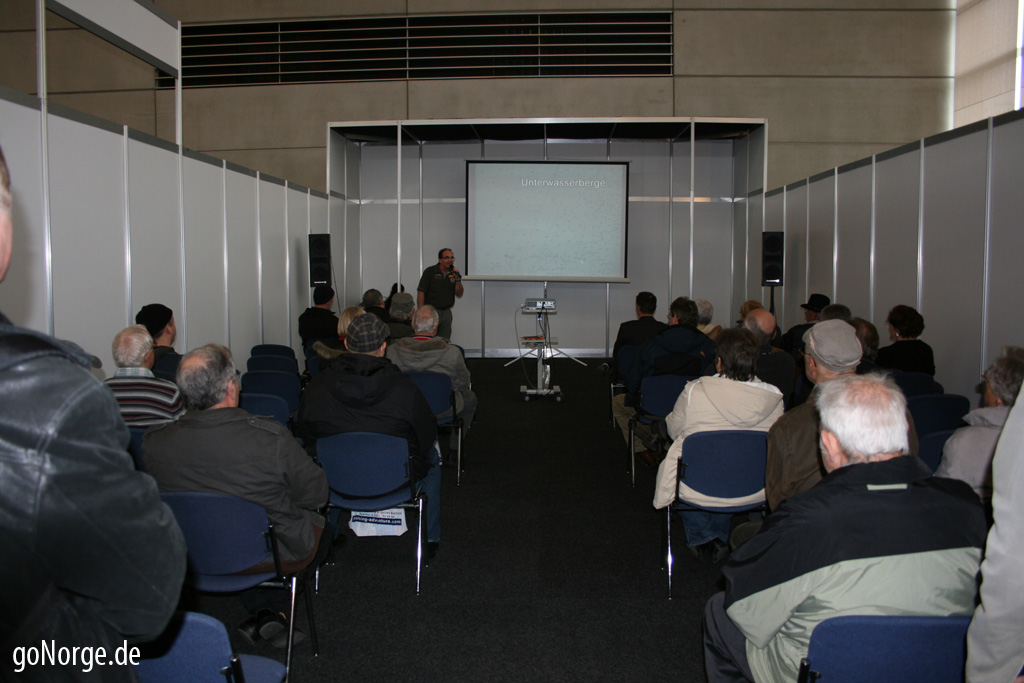Für uns stellte es sich wie folgt dar: Das gemischte Publikum zeigte sich sehr interessiert am Meeresangelsport und an Norwegen. Wir hielten Vorträge über Heilbutt angeln und Sicherheit auf See – Workshops. Doch nach wie vor haben wir ein „Problem“,- wer uns und unsere Internetseite noch nicht kennt, lässt sich schwer überzeugen, dass wir nichts verkaufen und unsere Informationsseite im Internet vollkommen frei und unverbindlich ist. Unsere Pionierarbeit auf diesem Gebiet hat uns die drei Tage über viel Spaß bereitet und wenn es der Beruf erlaubt kommen wir in 2013 gerne wieder nach Rostock.