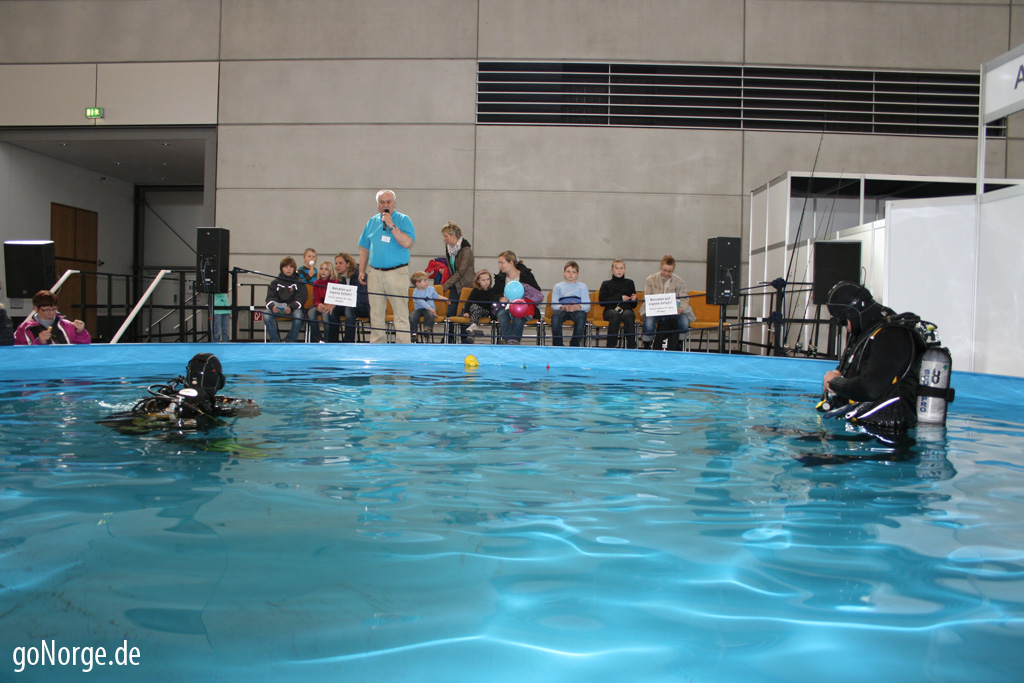 In einem großen Rundpool wurden Köder vorgeführt, zogen Taucher ihre Bahn und Modellboote summten im Kreis. Ein Vortragsraum wurde den ganzen Tag von verschiedenen Akteuren mit Leben gefüllt. Hier soll im nächsten Jahr mehr Platz und Sitzkapazität geschaffen werden, da es manchmal recht eng wurde.