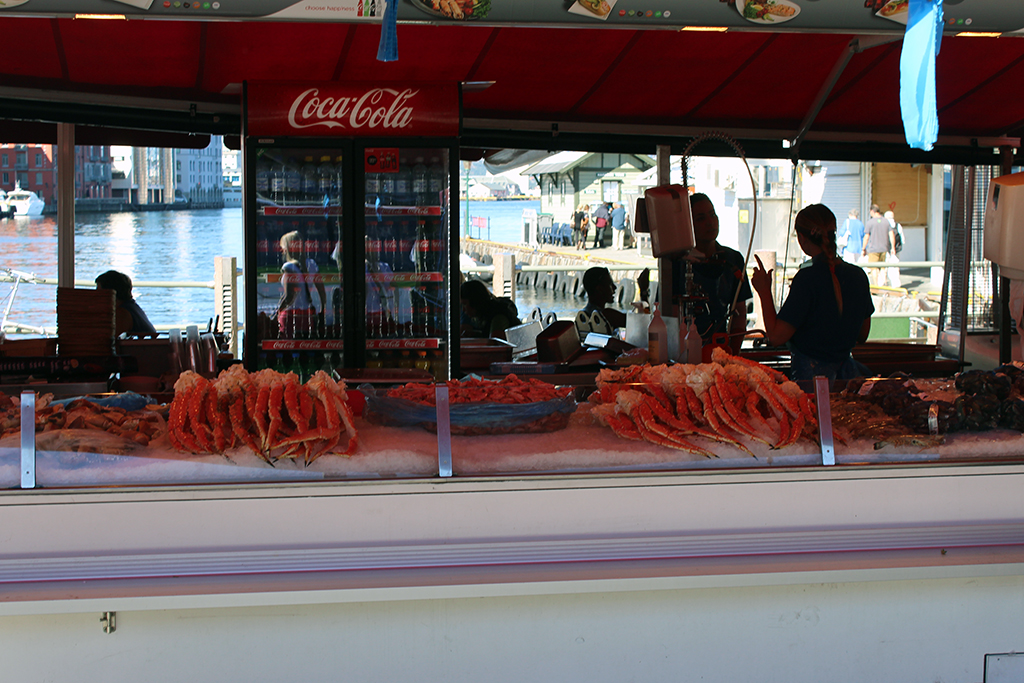 Bergen Fischmarkt: Der Fischmarkt in Bergen ist zwar nicht riesig, aber bunt und abwechslungsreich und absolut sehenswert, denn es gibt nicht nur Fisch zu kaufen, sondern auch leckere Rentierbouletten.