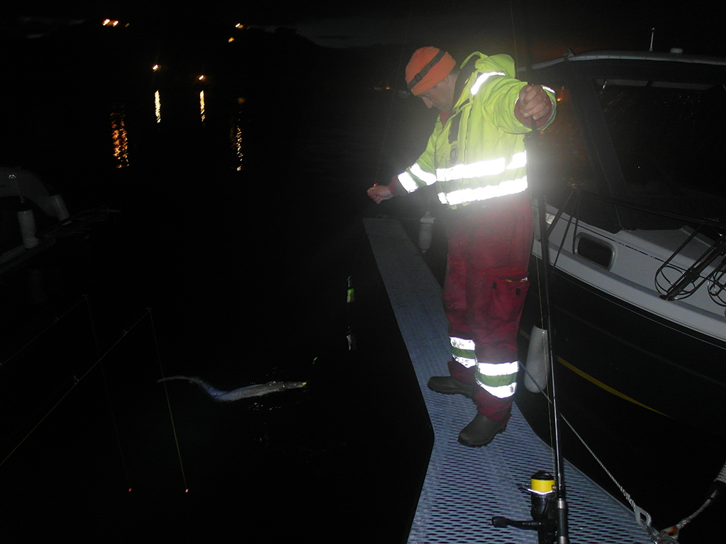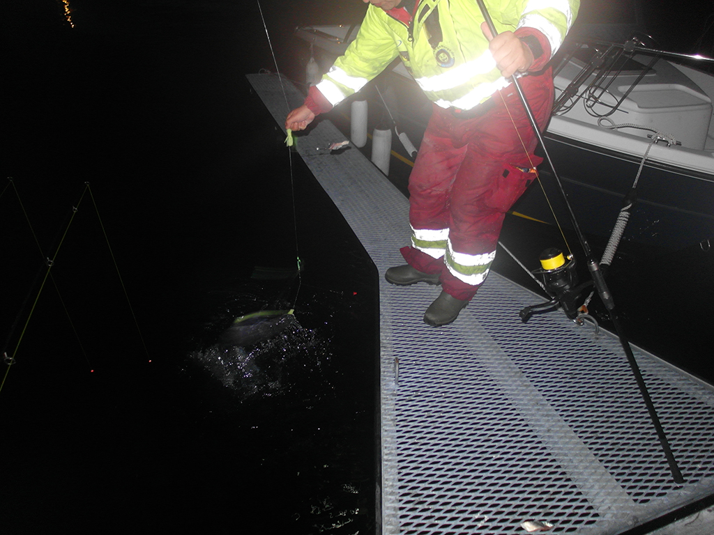 Tagsüber konnten wir am Steg einige Pollacks um die 70 cm überlisten. Eine super Alternative bei schlechtem Wetter.