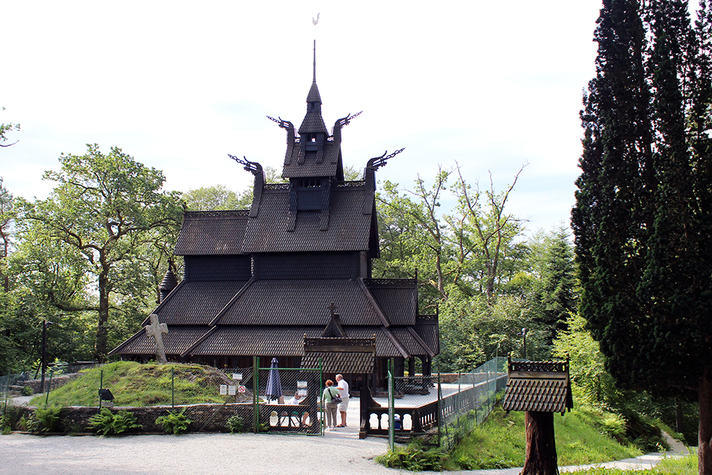Bergen Stabkirche Fantoft: Stabkirche aus dem 13. Jahrhundert, die nach einem Feuer originalgetreu wiederaufgebaut wurde.