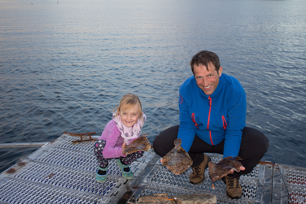 Tagsüber und in der Dämmerung hatten wir ebenfalls am Steg tolle Plattfischfänge. Mit kleinen Rekern konnten wir einige Plattfisch fangen, was gerade meiner Tochter sehr viel Spaß gemacht hat.