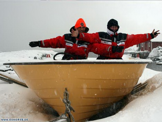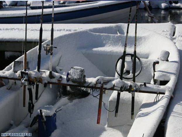 Der Morgen begrüßte uns mal wieder mit verschneiten Booten. Nachdem